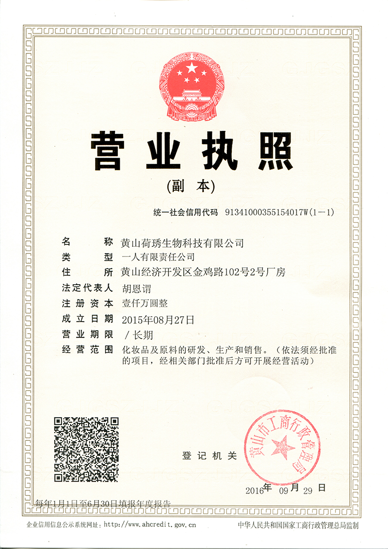 2015年8月27日,黃山荷琇生物科技有限公司正式成立于黃山市黃山經濟開發(fā)區(qū),是黃山市首家現代標準化的化妝品生產經營企業(yè)。