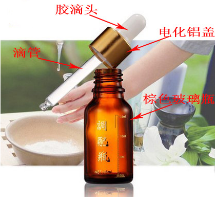 精油瓶系列:玻璃瓶身+內(nèi)塞+大頭蓋或膠滴頭+滴管+電化鋁蓋 見圖四